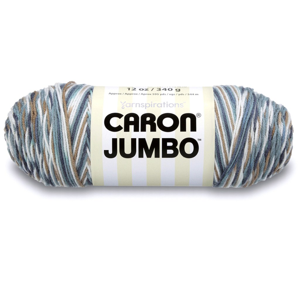 This pattern calls for 3 balls of Caron One Pound (812 yds each) in your Main Color (MC), 2 balls of Caron One Pound for your Contrast Color B and 1 ball of Caron Jumbo (595 yds), for your Contrast Color C. In the four color ways offered in the pattern, Contrast Color C is always a variegated yarn. If you can’t find the color recommended by the pattern, another medium-weight (4) yarn in the color of your choice will work just fine.